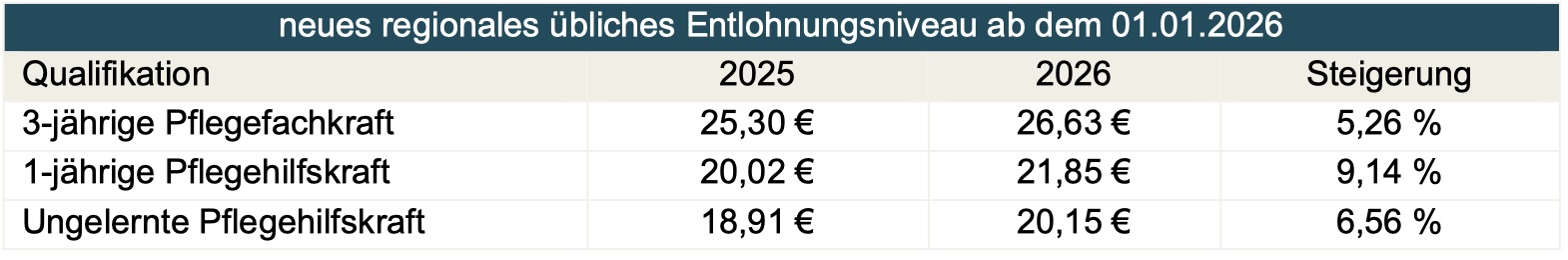 Jährlich zum 31.10. werden die neuen regional üblichen Entlohnungsniveaus veröffentlicht, welche ab 01.01. des Folgejahres verbindlich umzusetzen und einzuhalten sind.