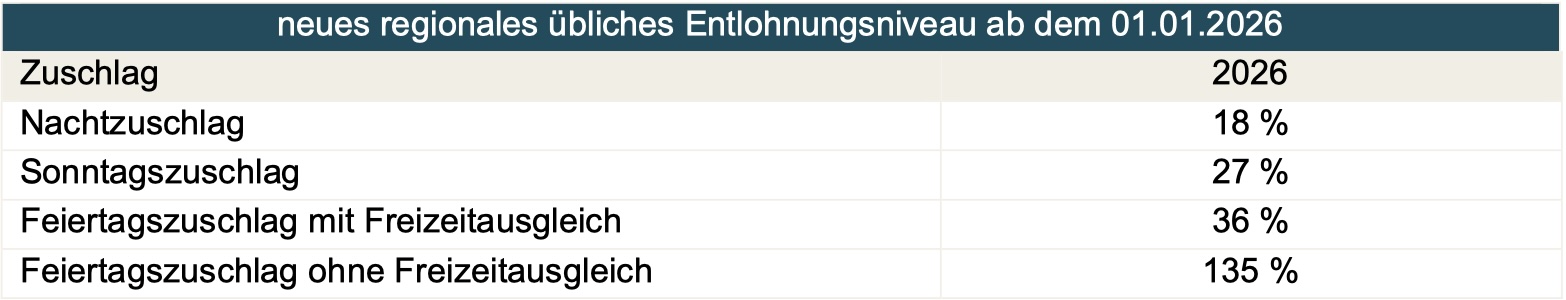 Auch die Zeitzuschläge sind ab 01.01.2026 in ihrer prozentualen Höhe anzupassen: